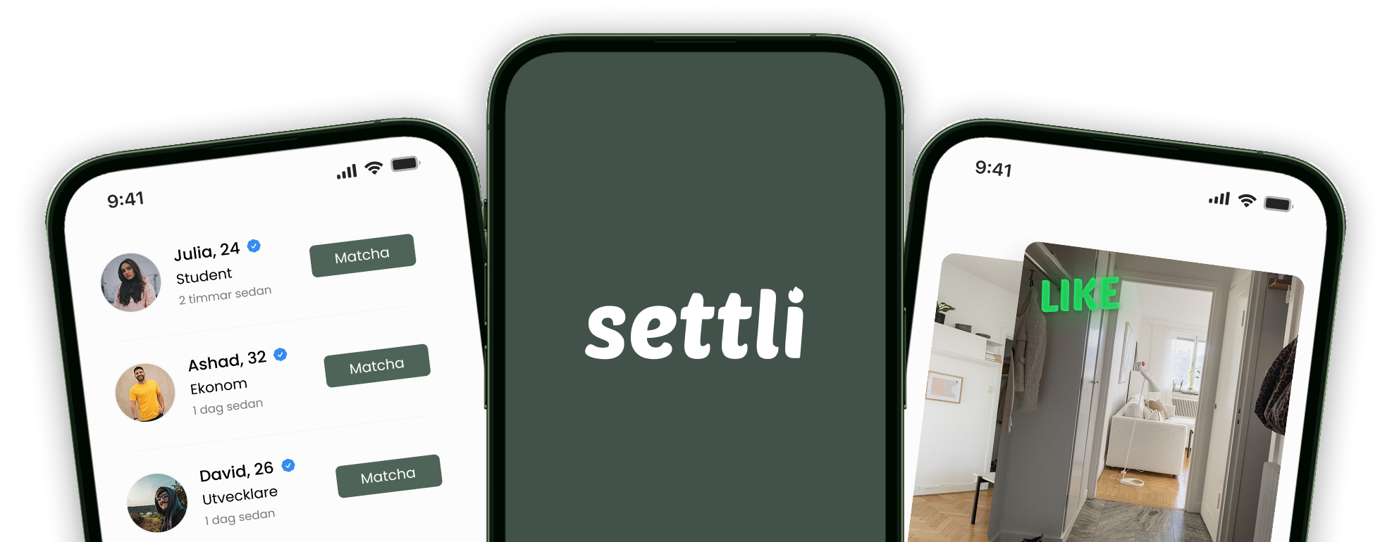 Oavsett om du söker nytt hem eller hyr ut ditt eget så hjälper Settli dig hitta rätt match. Enklare kontakt, snabbare besked och allt samlat i en app.